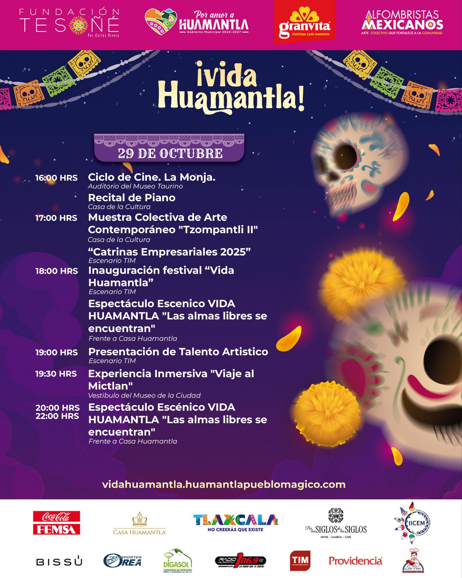 - Experiencia inmersiva “Viaje al Mictlán” (19:30 h)