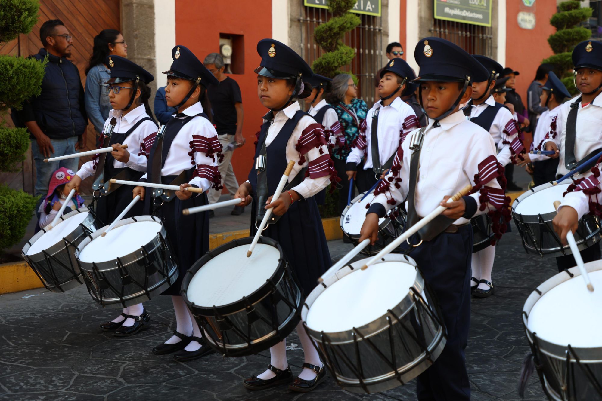 Al finalizar el homenaje, dio inicio el tradicional desfile cívico, con la participación de 15 escuelas de nivel primaria, que llenaron las calles de colores, tradición e historia. Los estudiantes presentaron tablas rítmicas, pirámides humanas y diversas rutinas deportivas, luciendo vistosos disfraces que representaban pasajes y figuras emblemáticas de la Revolución Mexicana.