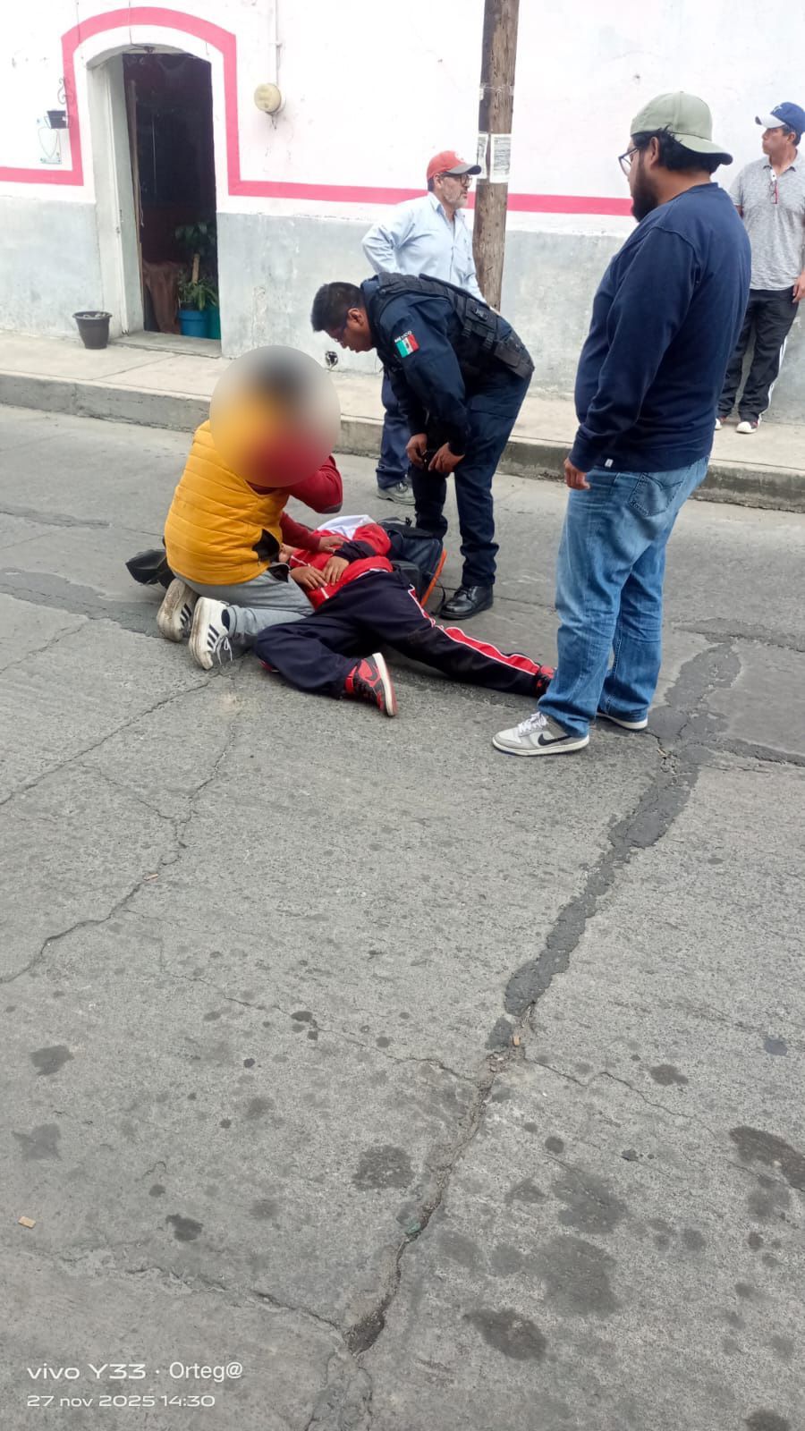 La Direcci贸n de Seguridad P煤blica, Tr谩nsito y Protecci贸n Civil de Huamantla informa que la tarde de este jueves se brind贸 auxilio inmediato a un menor de edad que cay贸 de una motoneta en movimiento, en la calle Guerrero Norte, entre Morelos y Abasolo, en la zona Centro del municipio.