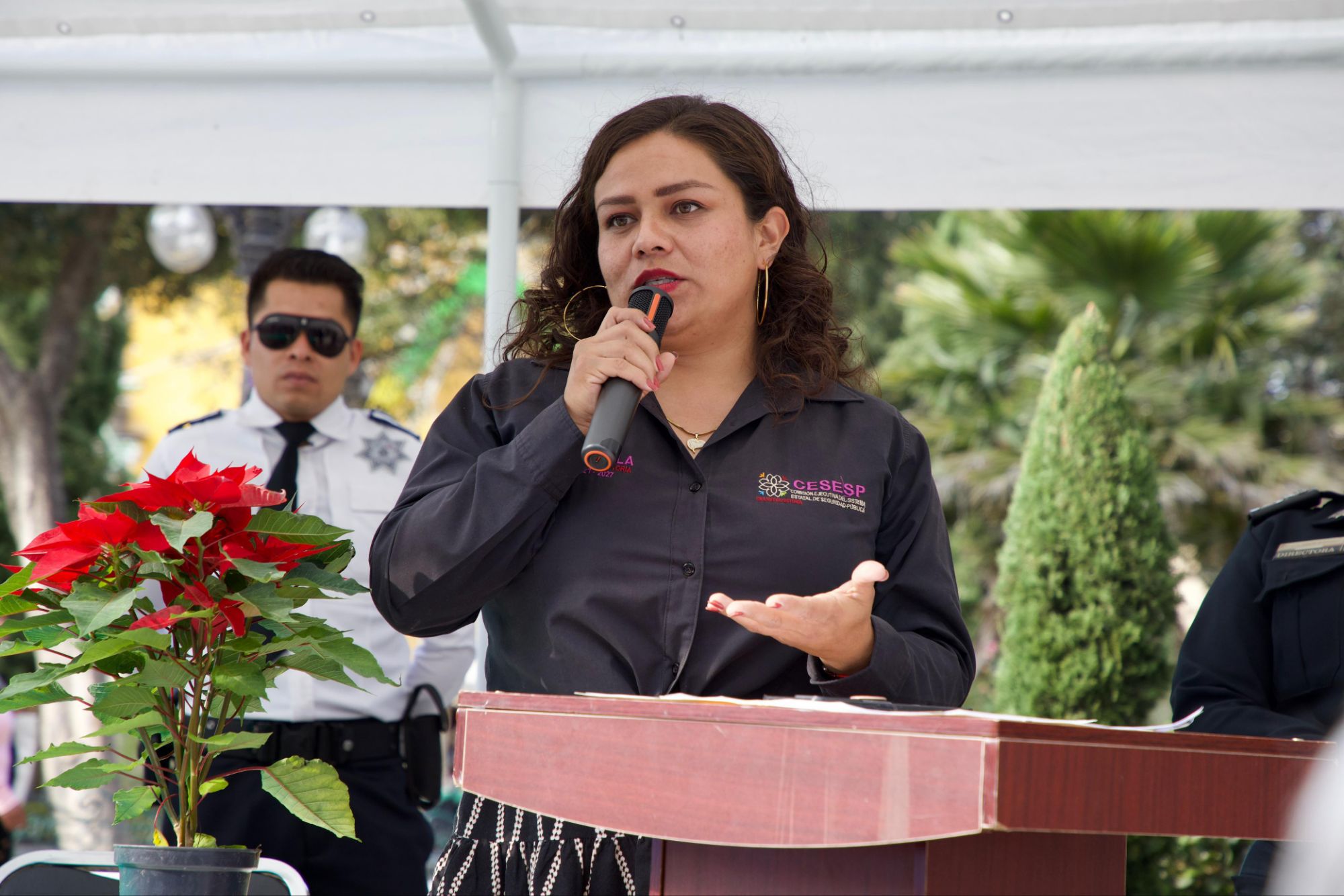 Durante la jornada estuvieron presentes la síndico municipal, Brizeyla Iveet Rodríguez López, el secretario del Ayuntamiento, Luis Miguel Quiroz Martínez, la directora de Seguridad Pública, Protección Civil y Tránsito Municipal, Gloria Lilia Checa Hernández así como la coordinadora del programa “Mujeres Tejedoras de la Patria”, Gethsemaní Velázquez Cervantes.