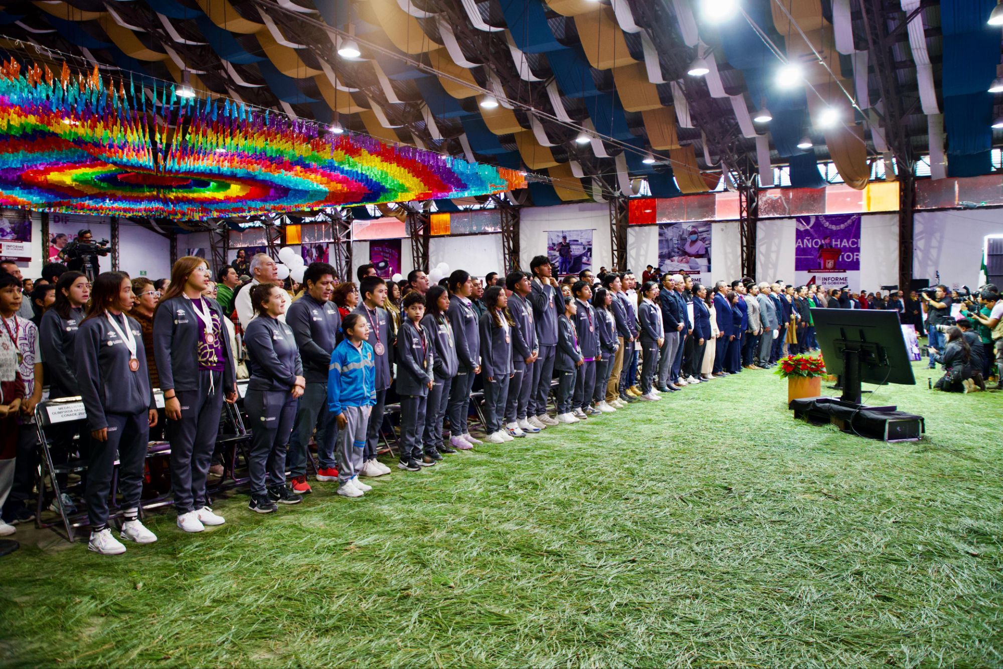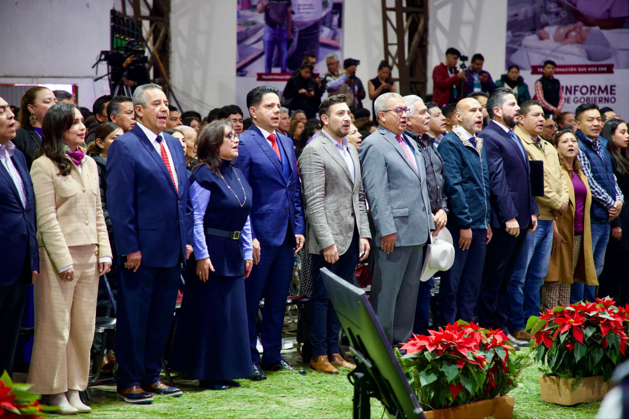 En su mensaje, Lorena Cuรฉllar destacรณ que su gobierno ha cumplido 283 de los 300 compromisos adquiridos al inicio de la administraciรณn, demostrando que la grandeza del estado no depende del tamaรฑo de su territorio, sino de la forma de gobernar con responsabilidad, eficiencia y amor por la gente.