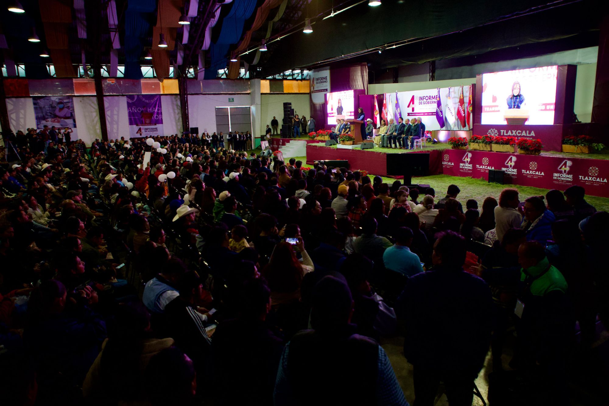 09/12/2025|En el marco del 4ยบ Informe de Gobierno 2021โ2027, la gobernadora Lorena Cuรฉllar Cisneros presentรณ en Huamantla los avances y obras que han marcado un antes y un despuรฉs en el futuro econรณmico, social y logรญstico del estado. En un encuentro donde se reunieron autoridades y representantes de los municipios de Ixtenco, Altzayanca, Cuapiaxtla, El Carmen Tequexquitla, Terrenate y Zitlaltepec, que conforman la zona oriente de Tlaxcala donde destacรณ que Huamantla se ha convertido en un municipio clave para el crecimiento de Tlaxcala, gracias a la coordinaciรณn institucional y a la suma de inversiones pรบblicas y privadas sin precedentes.