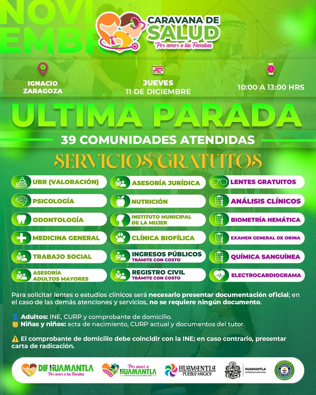 1O/12/2O25| Con la Caravana de la Salud y Servicios β€œPor Amor a las Familias”, el Gobierno Municipal de Huamantla concluirΓ‘ este 11 de diciembre en el pueblo de Ignacio Zaragoza un aΓ±o de intenso trabajo que permitiΓ³ acercar atenciΓ³n mΓ©dica, servicios sociales y apoyos gratuitos a las 39 comunidades del municipio.