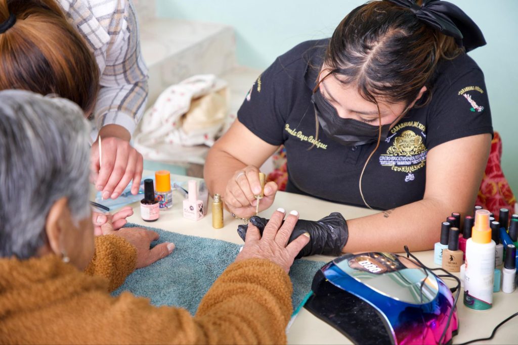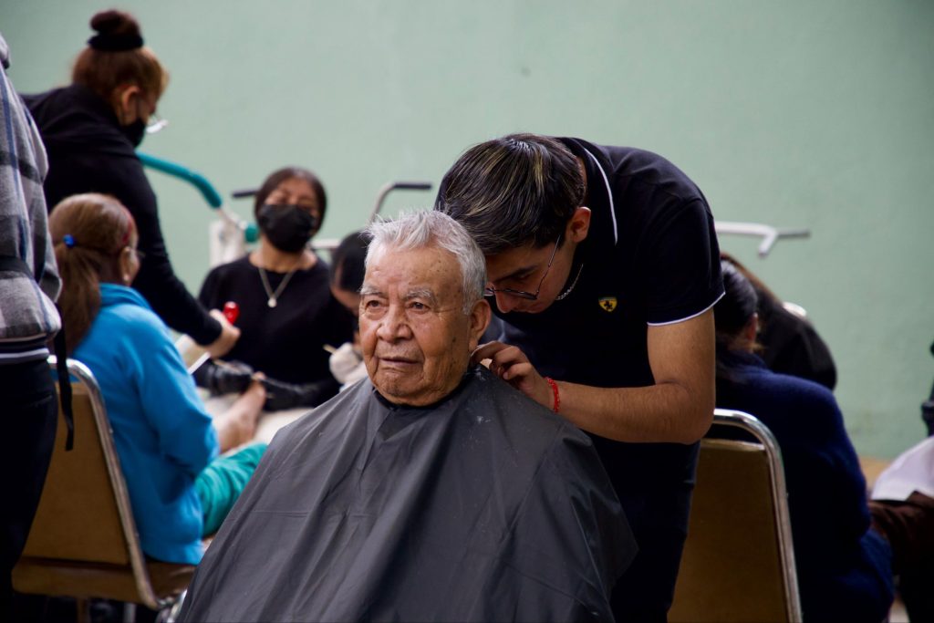 Durante esta jornada, las y los adultos mayores recibieron diversos servicios enfocados en su cuidado personal y bienestar físico, entre los que destacaron corte de cabello, corte de uñas, aplicación de tinte, masajes, tratamiento de verrugas, pedicura y aplicación de uñas, acciones que contribuyeron no solo a mejorar su imagen, sino también a fortalecer su autoestima y calidad de vida.