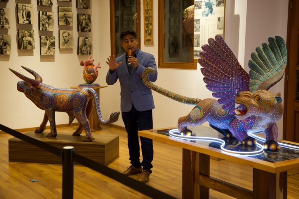 Así mismo, se inauguró la exhibición “Arte y Tradición en Huamantla: Alebrijes Taurinos”, con obras certificadas por Swarovski del maestro Francisco Rivas, que fusionan la tradición de los alebrijes con motivos taurinos. Esta exposición da muestra del talento artístico de nuestra comunidad.