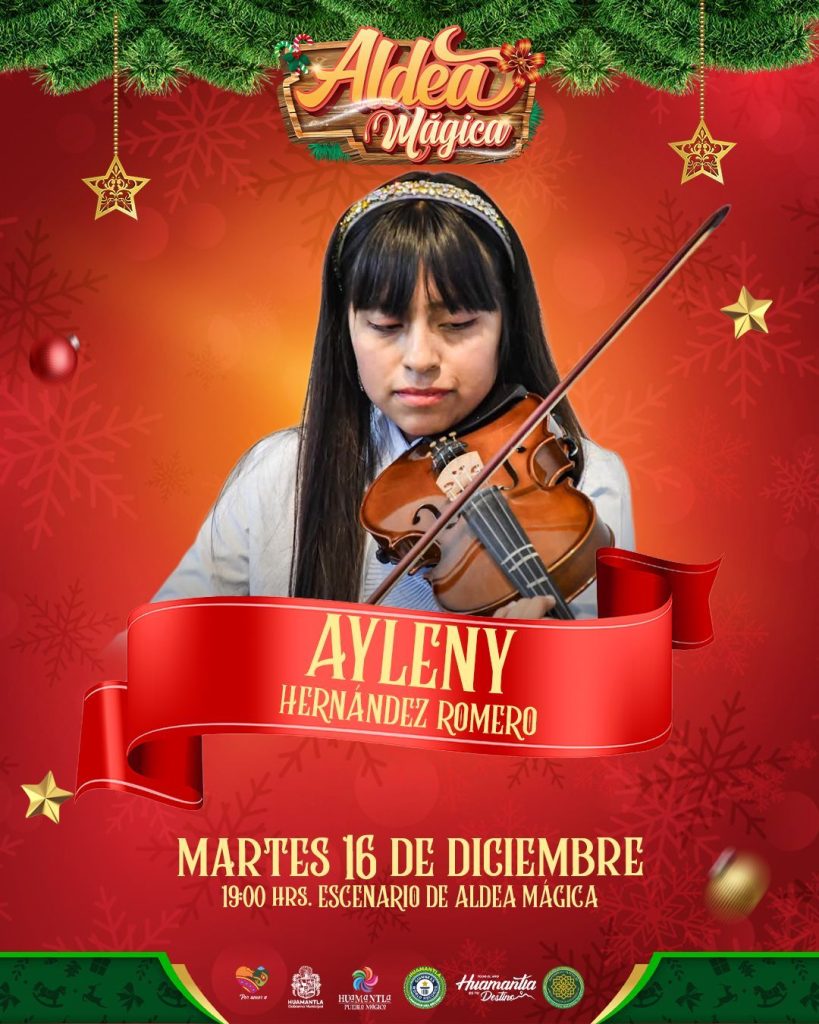 Huamantla, Tlaxcala. — Como parte de las actividades decembrinas que llenan de vida y tradición a la Aldea Mágica, esta noche se llevará a cabo la presentación de Ayleny Hernández Romero, talentosa violinista, en el escenario principal.