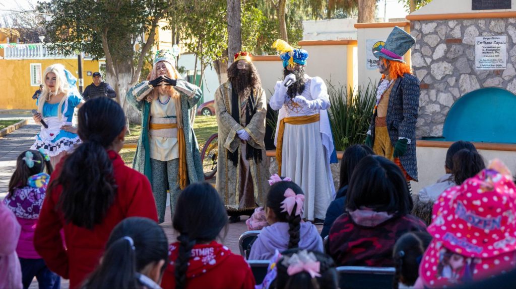 Durante los recorridos, el alcalde estuvo acompañado por los Reyes Magos Melchor, Gaspar y Baltasar, así como por personajes como El Sombrerero Loco y Alicia en el País de las Maravillas, quienes reforzaron el ambiente festivo en cada lugar visitado.