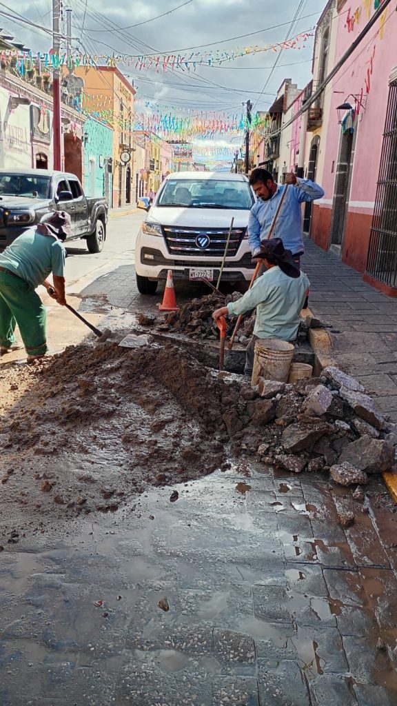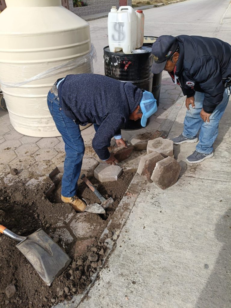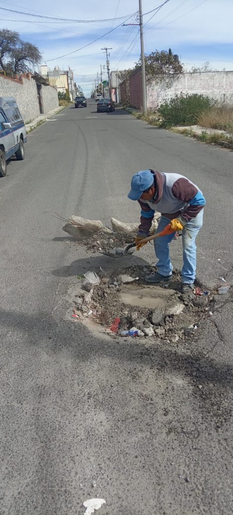 Asimismo, se efectuaron labores de bacheo en Privada de Juárez y el cambio de brocal, contribuyendo a la seguridad vial y a la correcta operación de la infraestructura hidráulica.