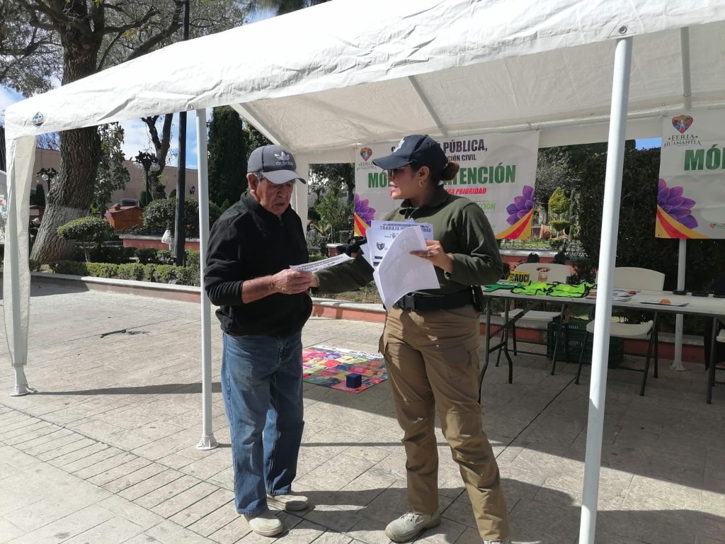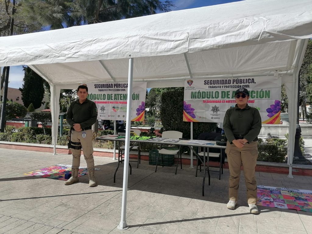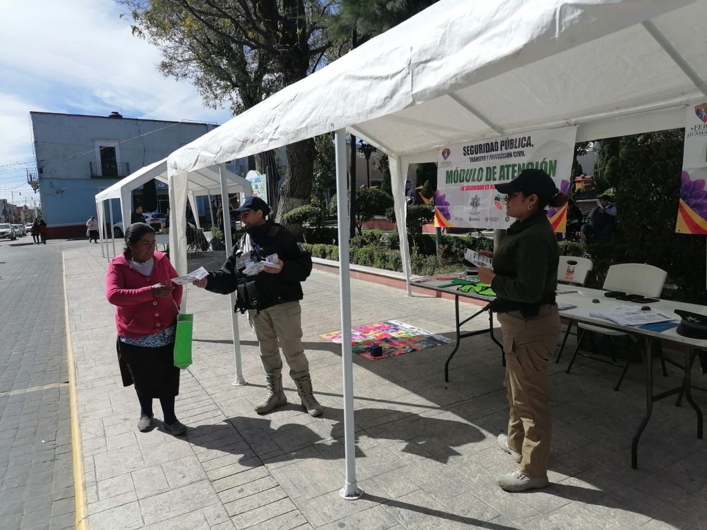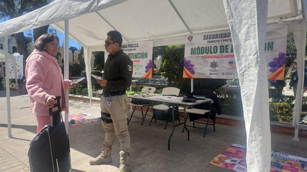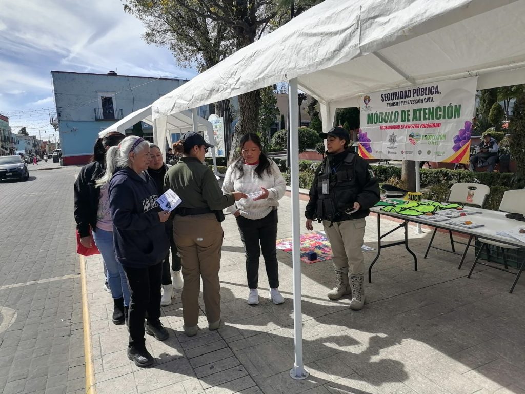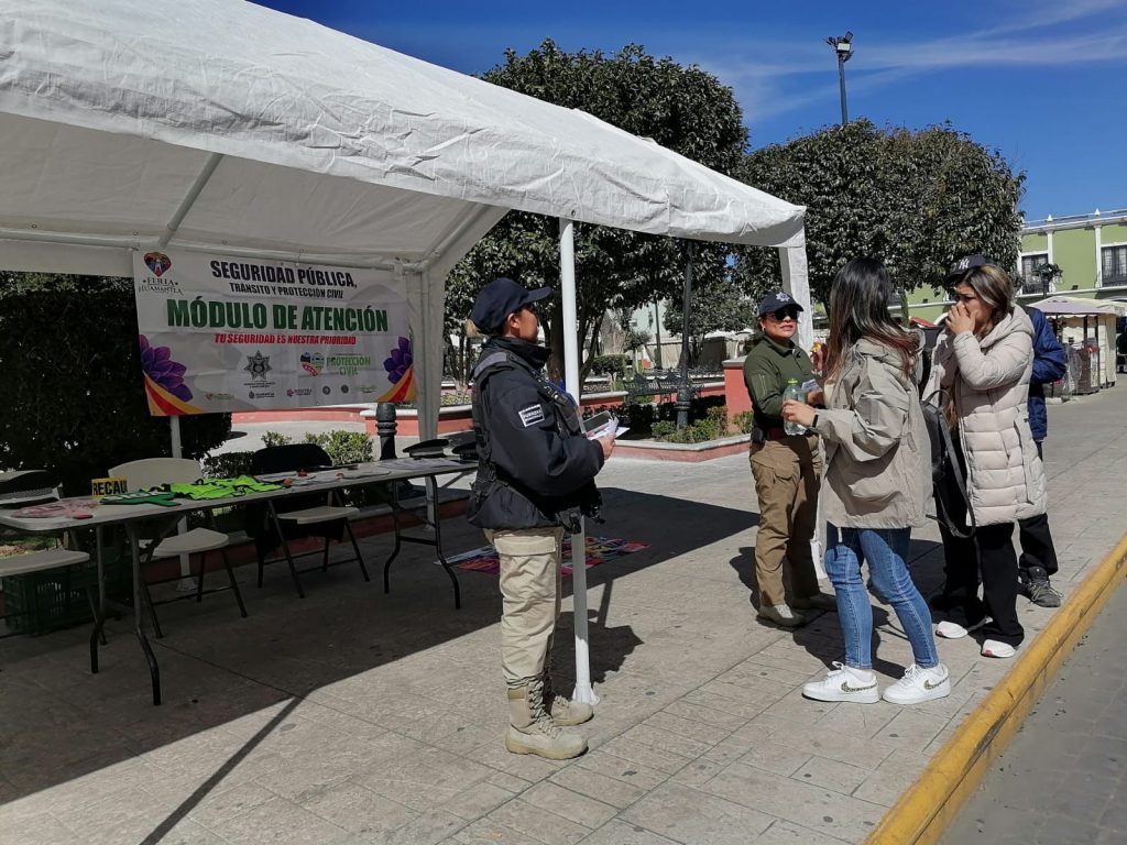 Huamantla, Tlaxcala, a 7 de febrero de 2026.– Con el objetivo de mantener cercanía con la ciudadanía, prevenir conductas delictivas y brindar atención oportuna, la Dirección de Seguridad Pública, Tránsito y Protección Civil de Huamantla implementó un módulo de atención ciudadana en el Parque Juárez.