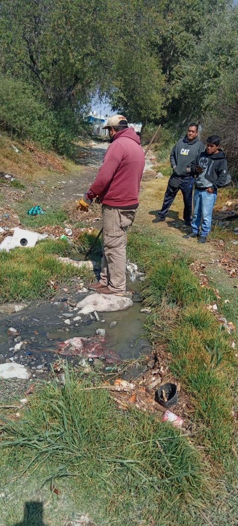 Asimismo, se llevaron a cabo trabajos de drenaje y desazolve en la Barranca 18 de Octubre, con el objetivo de mejorar el flujo del sistema sanitario y prevenir posibles obstrucciones que puedan afectar a las familias de la zona.