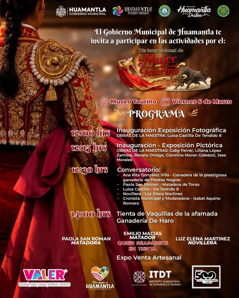 Como parte de las actividades conmemorativas del Día Internacional de la Mujer, el Gobierno Municipal de Huamantla llevará a cabo una jornada dedicada a reconocer la participación y trayectoria de las mujeres dentro del ámbito taurino, una de las tradiciones culturales más arraigadas en este Pueblo Mágico.