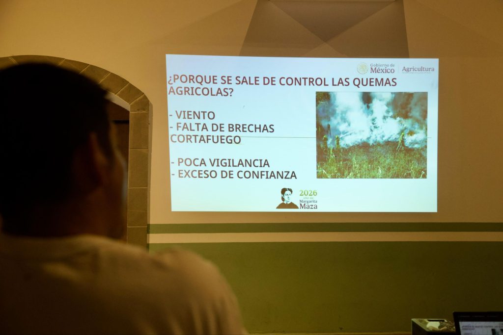 Como parte de la jornada, personal de la SADER impartió las capacitaciones “NOM-015-SEMARNAT/AGRICULTURA-2023”, relacionada con la regulación de quemas agropecuarias, así como la ponencia “Mi parcela no se quema”, enfocada en promover prácticas agrícolas responsables y prevenir incendios derivados de quemas mal controladas.