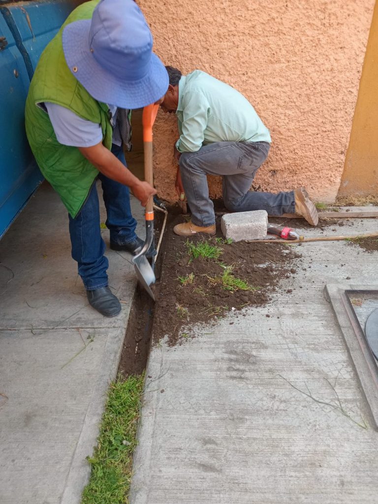 Asimismo, cuadrillas operativas llevaron a cabo labores de mantenimiento en el sistema de drenaje en calle Victoria y calle Pinos, con el propósito de mejorar el flujo de las aguas residuales y prevenir posibles obstrucciones que pudieran afectar a las familias de la zona.