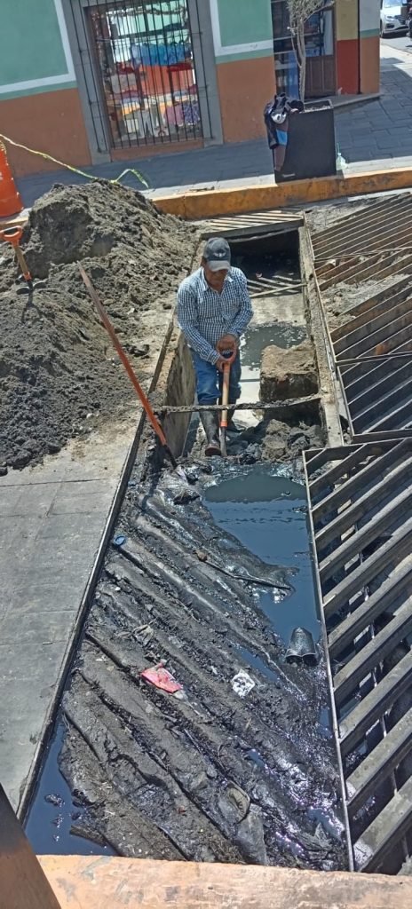 Durante la jornada, se llevaron a cabo labores de desazolve y limpieza de alcantarillas en las calles Hidalgo y Guerrero, acciones que permiten mejorar el flujo del sistema sanitario y prevenir posibles obstrucciones que afecten el servicio.