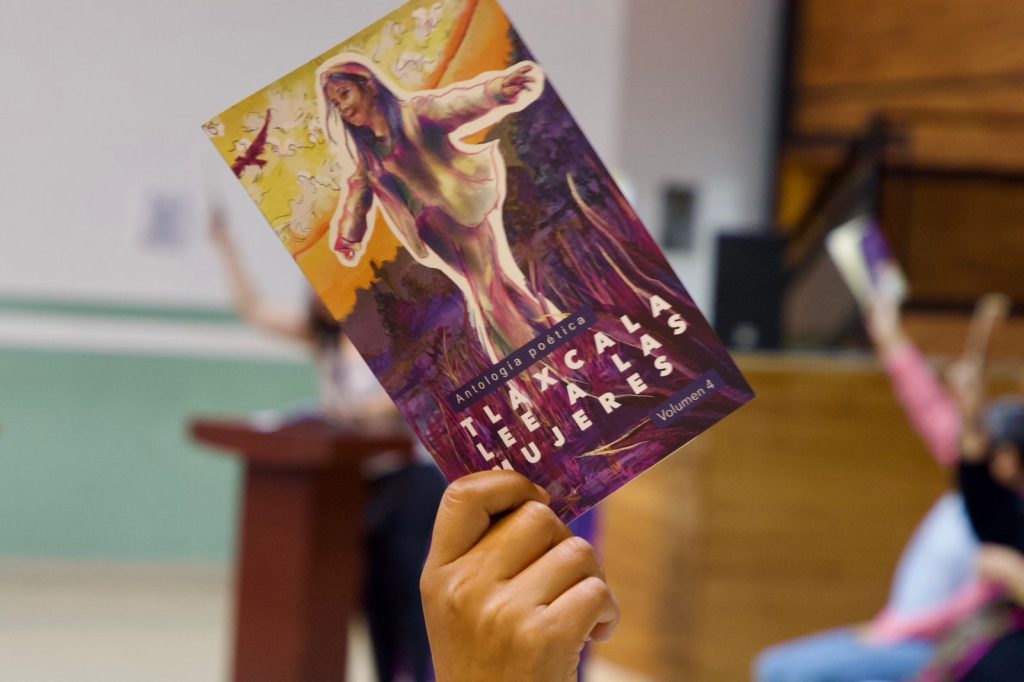 Durante el evento, se llevó a cabo la lectura colectiva del Volumen 4 de la antología poética “Tlaxcala Lee a las Mujeres”, obra que reúne el trabajo de diversas escritoras y que busca visibilizar la producción literaria hecha por mujeres.