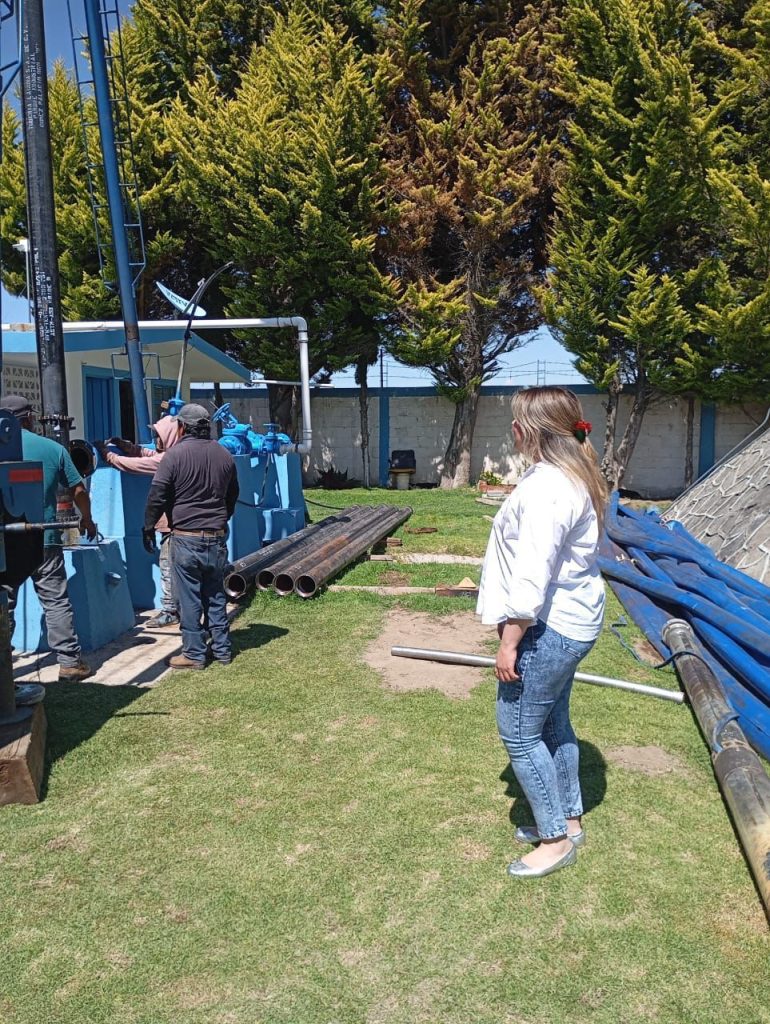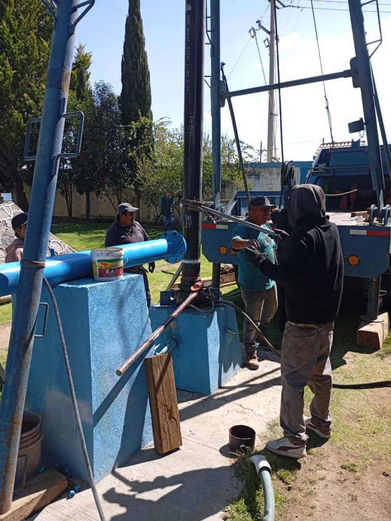 Como parte de estas labores, se llevaron a cabo importantes intervenciones técnicas, entre las que destacan la sustitución de la columna de impulsión mediante la instalación de tubería de acero, lo que incrementa la resistencia estructural del sistema, reduce pérdidas de carga y mejora la conducción hidráulica.