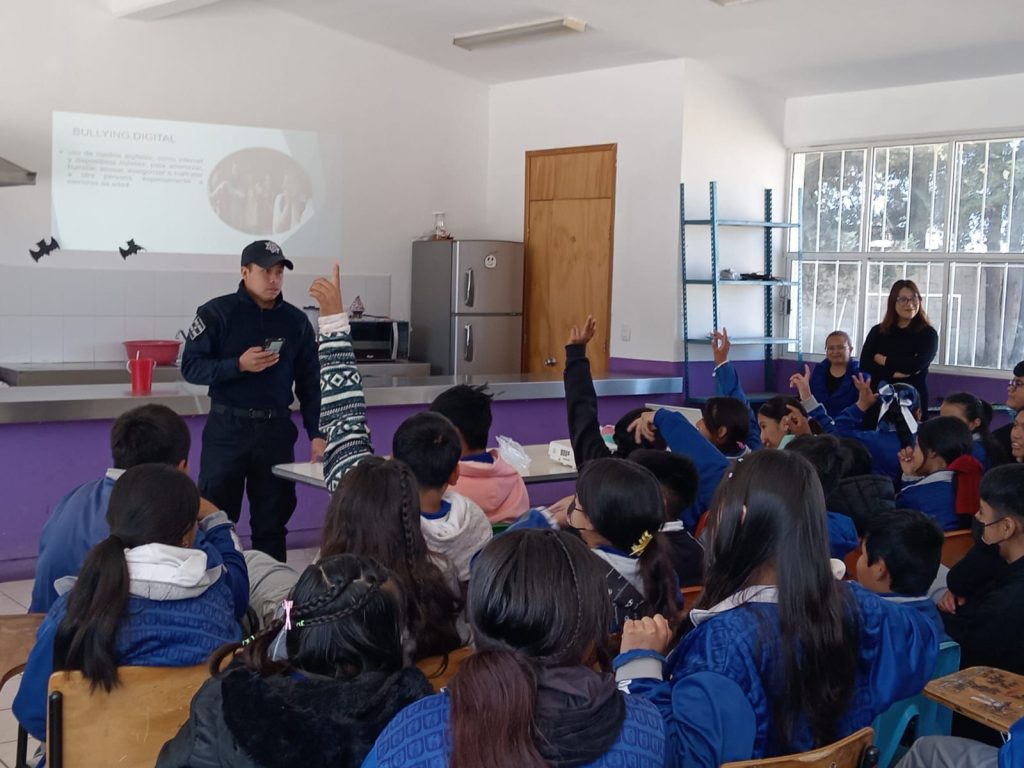 De igual manera, se realizó una plática informativa dirigida a estudiantes de la telesecundaria en la comunidad de San José Xicohténcatl, donde se abordaron temas como el ciberbullying, fomentando la prevención y el uso responsable de las tecnologías, así como el fortalecimiento del vínculo entre las instituciones educativas y las corporaciones de seguridad.