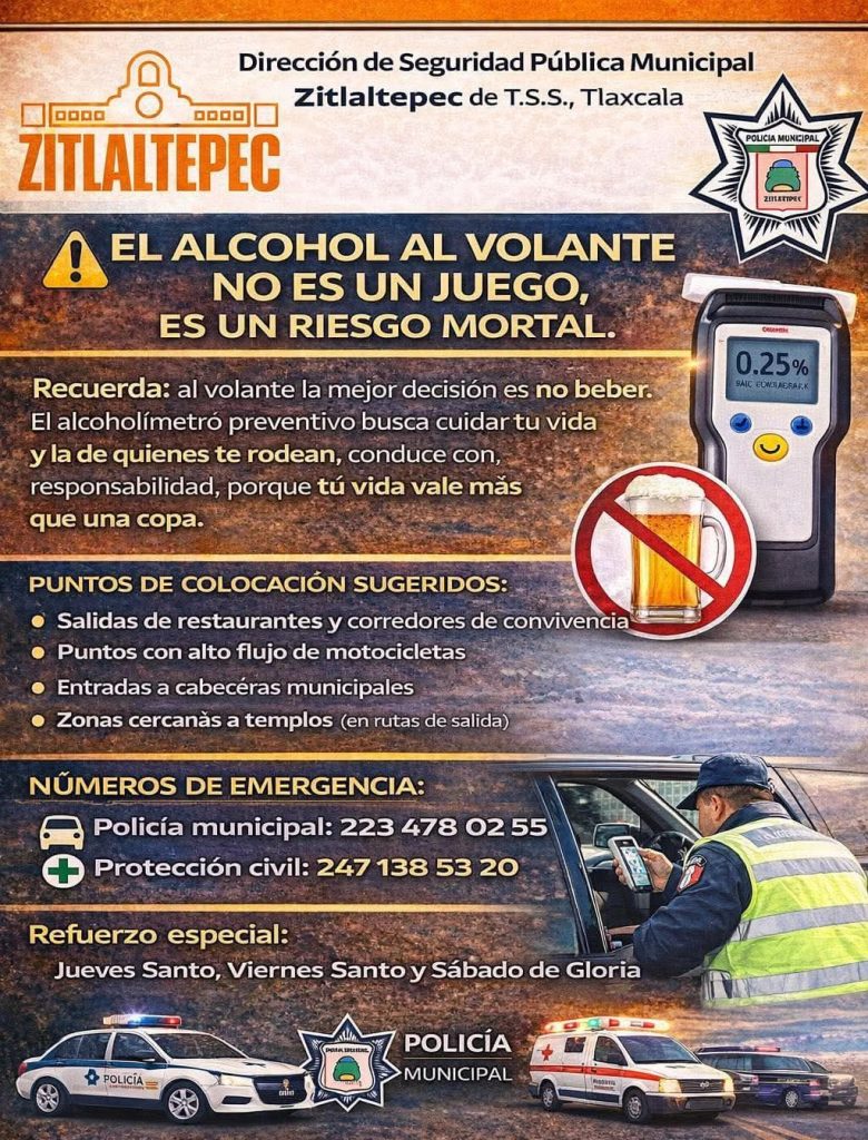 El Ayuntamiento de Zitlaltepec a través de la Direccion de Seguridad y Protección Civil implementará medidas de prevención en pro de todas y todos, te exhortamos a tomar decisiones responsables y a cuidar de ti, de tus seres queridos, amigos y vecinos.